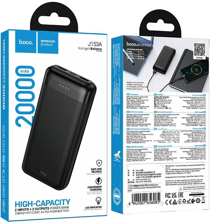 Внешний аккумулятор HOCO Мобильный аккумулятор J153A Stability 20000mAh QC3.0/PD 2A 2xUSB-A/USB-C черный