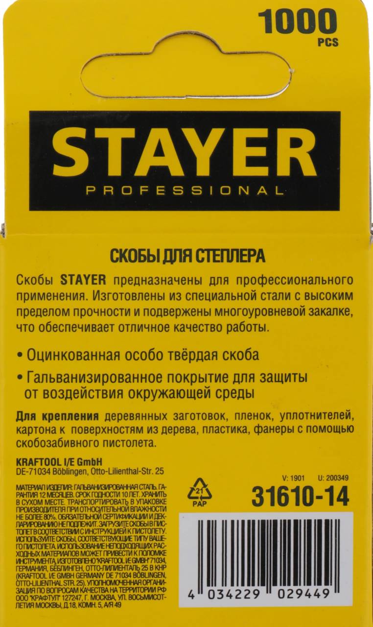 Аксессуар для пневмооборудования STAYER Скобы для степлера 31610-14
