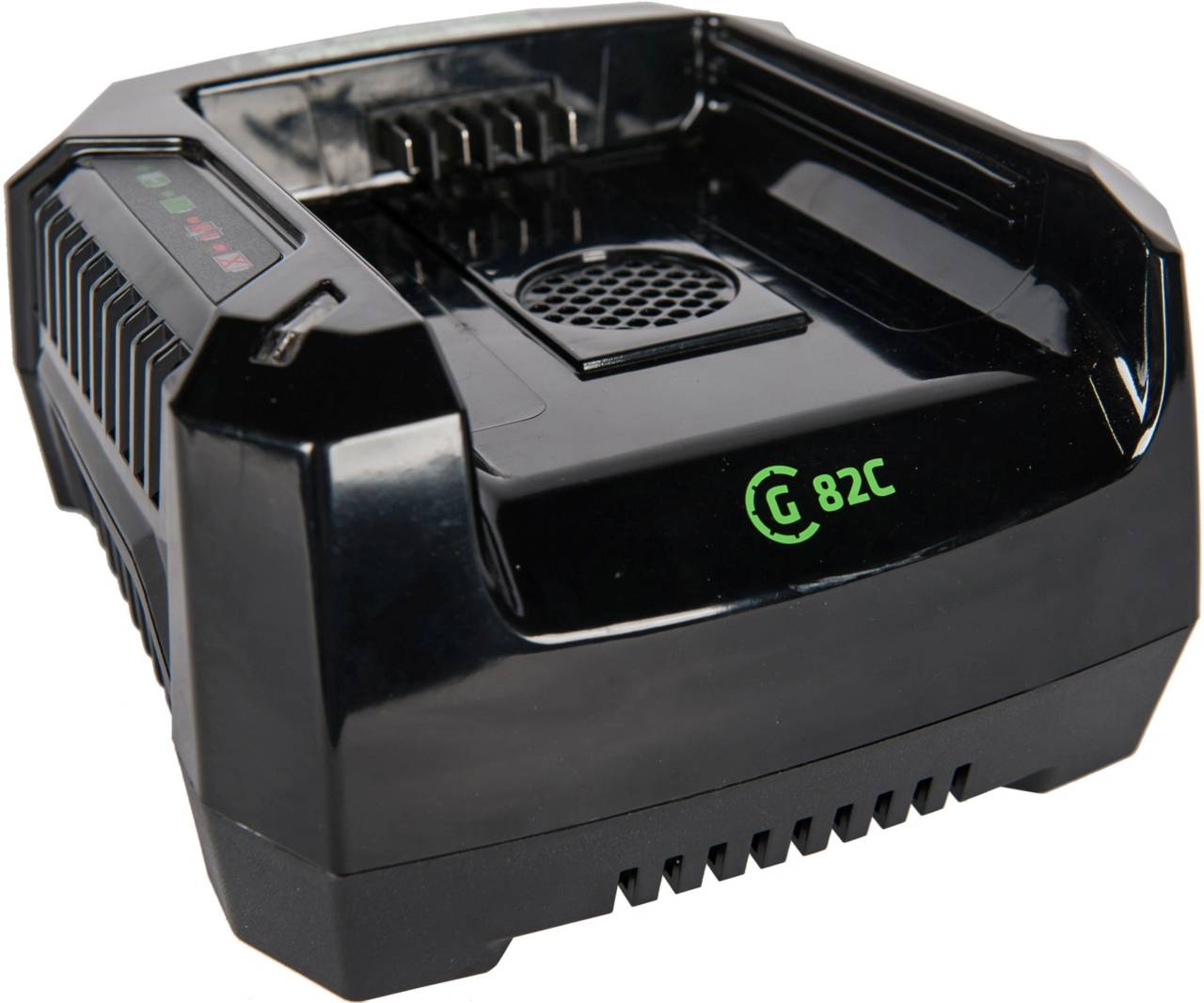 Зарядное устройство (модель G82C) - применяется для зарядки аккумуляторов Greenworks с напряжением 82 вольта. Зарядка поддерживает функцию быстрой зарядки и имеет активное охлаждение - кулер. Чип для защиты от перезарядки.