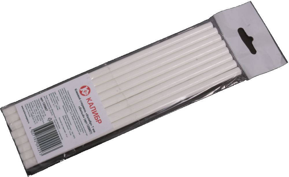 Клеевой стержень Калибр Белый 7 мм предназначен для использования в термоклеевом пистолете при склеивании широкого спектра упаковочных материалов из бумаги, картона, гофрокартона, древесины. Сохраняет свои свойства в условиях низких температур до - 30°С.