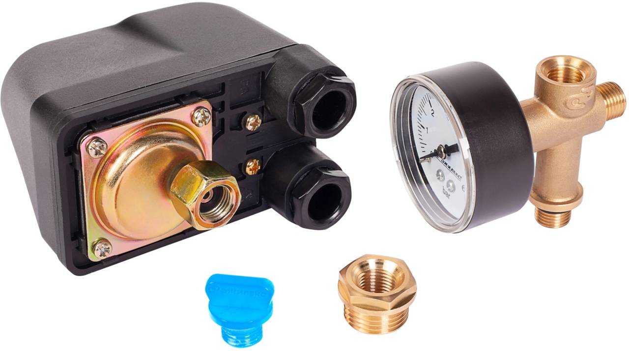 Комплектация:штуцер, манометр, реле давления, футорка, заглушка