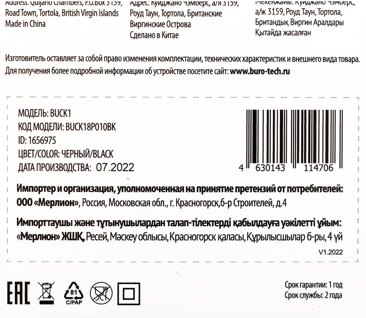 | PartNumber/Артикул Производителя: | BUCK18P010BK |