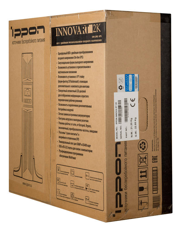 Особенности ИБП:автотестирование батарей, внешние аккумуляторные ячейки, поддержка SNMP, стабилизатор выходного напряжения, холодный старт