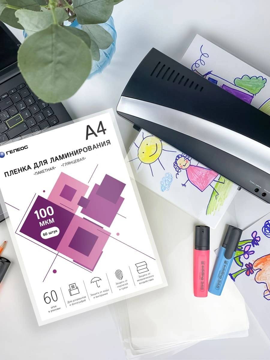 Для ламинатора HELEOS Пленка для ламинирования 100мкм A4 глянцевая 216x303мм LPA4-100-60