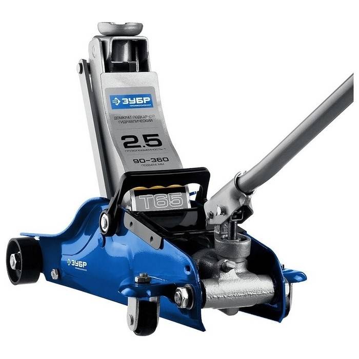 Домкрат ЗУБР Профессионал гидравлический подкатной T65, 2,5т, 90-360мм, [43057-2.5-K]