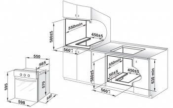 Размеры для встраивания:56x55x58см