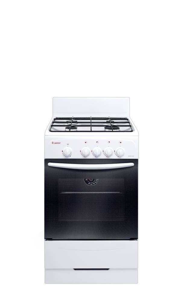 Плита газовая. Цвет Белый. Габариты (ВхШхГ) 85х50х53 см. Газ-контроль духовки, штампованные направляющие, термоуказатель духовки, щиток. Полезный объем духовки - 42 литра.