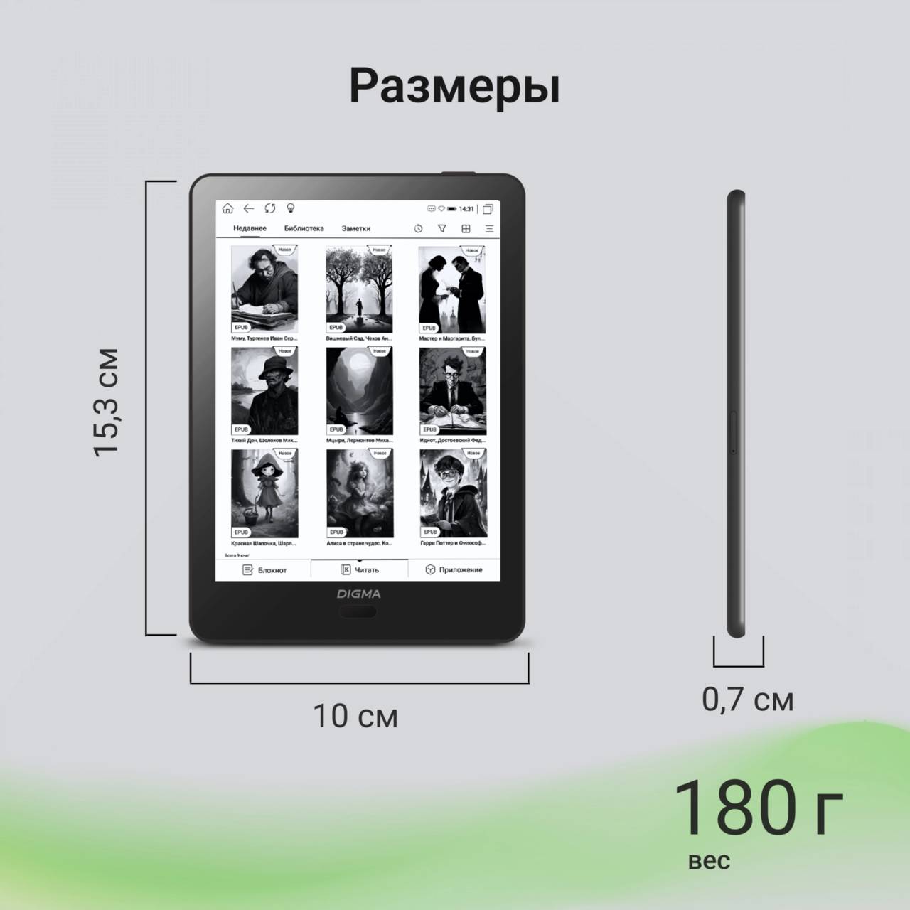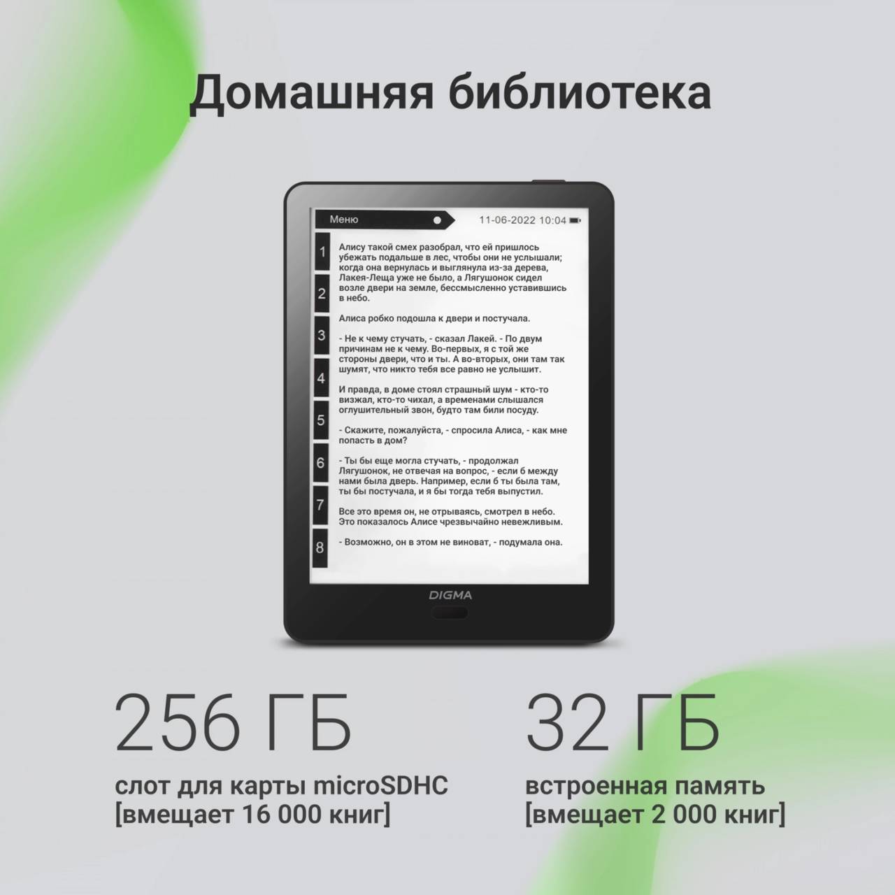 Электронная книга Digma A6 6" E-Ink Carta 758x1024 1.8Ghz 1Gb/32Gb/SD/microSDHC/подсветка дисплея черный
