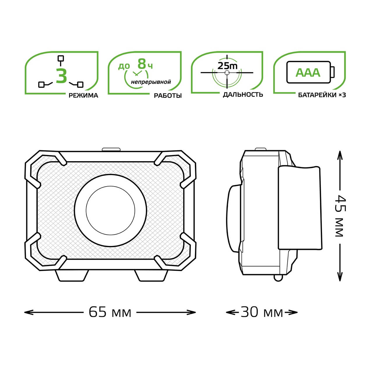 Фонарь GAUSS налобный GFL305 зеленый 3Вт лам.:светодиод. AAAx3
