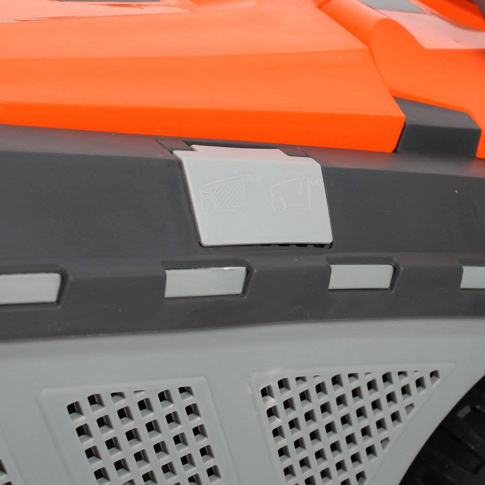 Эргономичная ручка управления с индикатором уровня заряда аккумулятора и возможностью выбора положения для рук оператора во время работы.Защита от несанкционированного пуска - пластиковый ключ.Долговечный пластиковый травосборник, позволяющий использовать химию для мойки.