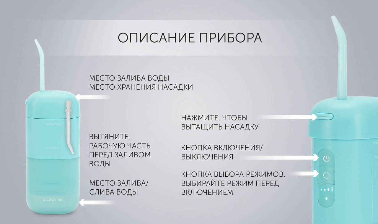 Ирригатор POLARIS PWF 1002 T импульсн. 3насад. бирюзовый