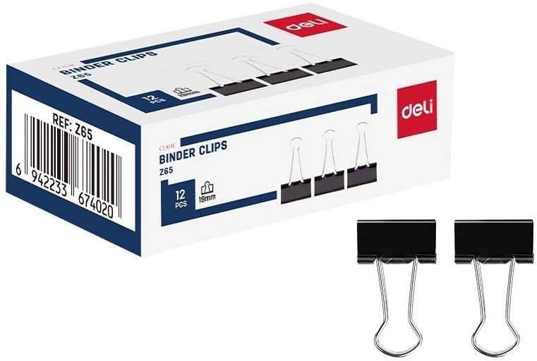 Канцтовар DELI Зажимы EZ65 металл 19мм черный картонная коробка