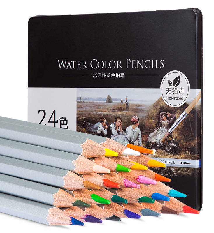 Описание:Карандаш DELI Карандаши цветные акварельные 6521 Nuevo липа 24цв. сереб. корпус мет.кор.