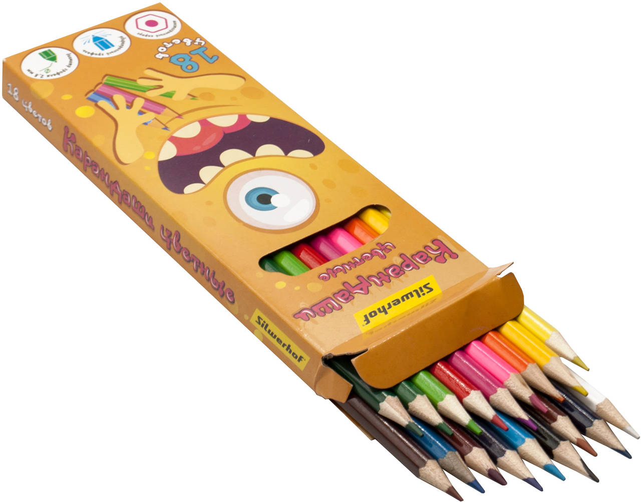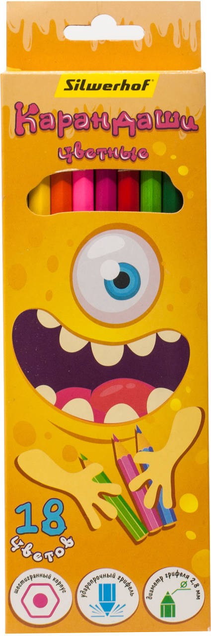 SILWERHOF Карандаши цв. Монстрики 2.8мм шестигран. дерево ассорти 18цв. коробка/европод.