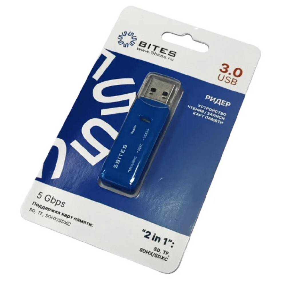 Картридер 5Bites Устройство ч/з карт памяти RE3-200BL USB3.0 Card reader / SD / TF / USB PLUG / BLUE