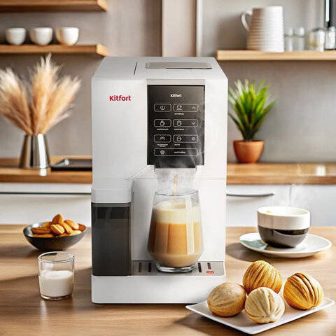 | Описание: | Наслаждайтесь бариста-кофе каждый день с автоматической кофемашиной Kitfort KT-7424 — мощной, функциональной и простой в использовании. Эта модель приготовит эспрессо, лунго, американо, лонг блэк и мягкий американо без лишних усилий! Кофемашина оснащена встроенной кофемолкой с 5 уровнями помола, что позволяет измельчать зёрна непосредственно перед завариванием для максимального раскрытия аромата. Давление 19 бар обеспечивает идеальную экстракцию, а регулировка крепости, температуры и объёма напитка даёт полный контроль над вкусом. Вы можете настроить количество зёрен, степень уплотнения таблетки, температуру воды и объём готового напитка под свои предпочтения. Удобная панель управления с дисплеем делает выбор режимов интуитивно понятным. В комплекте есть подставка для чашек, а съёмный поддон для капель с поплавком сигнализирует о необходимости опорожнения. Резервуар для воды — 1,5 л, контейнер для зёрен — 200 г, что достаточно для нескольких дней использования. Мощность устройства — 1480 Вт, уровень шума — до 70 дБ, длина шнура — 1 м, а отсек для хранения шнура расположен на дне корпуса. Габариты: 425 х 320 х 245 мм, вес — 9,1 кг. Все съёмные детали легко моются, а в комплекте идут ёршик и щётка для чистки, что упрощает уход. Производитель оставляет за собой право без предварительного уведомления вносить изменения в технические характеристики, комплектацию и конструкцию, не ухудшающие эксплуатационные характеристики изделия. |