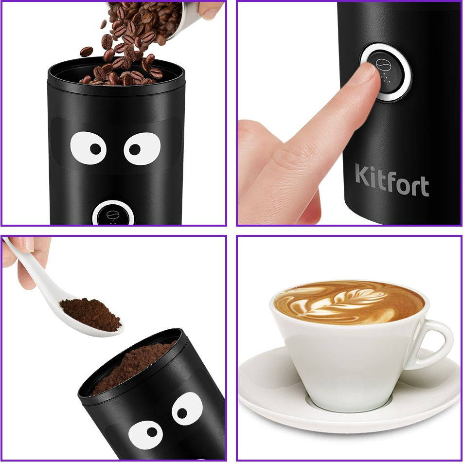 Кофемолка KITFORT КТ-798 180Вт сист.помол.:одинарный нож вместим.:50гр черный