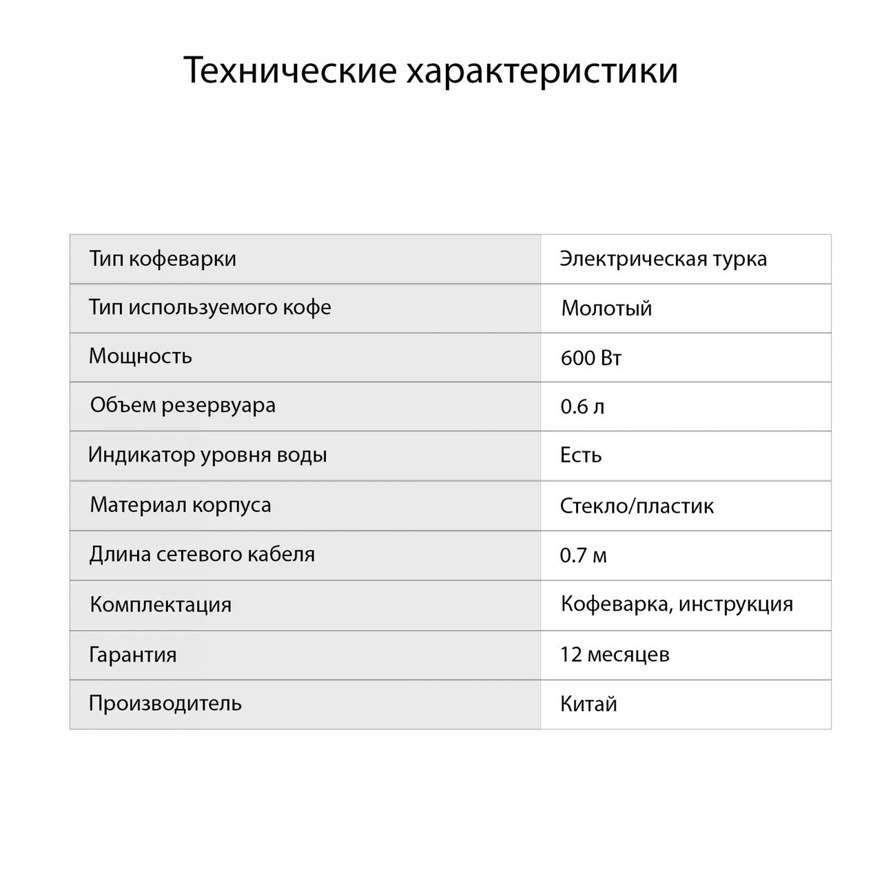 Тип кофеварки:Электрическая турка
