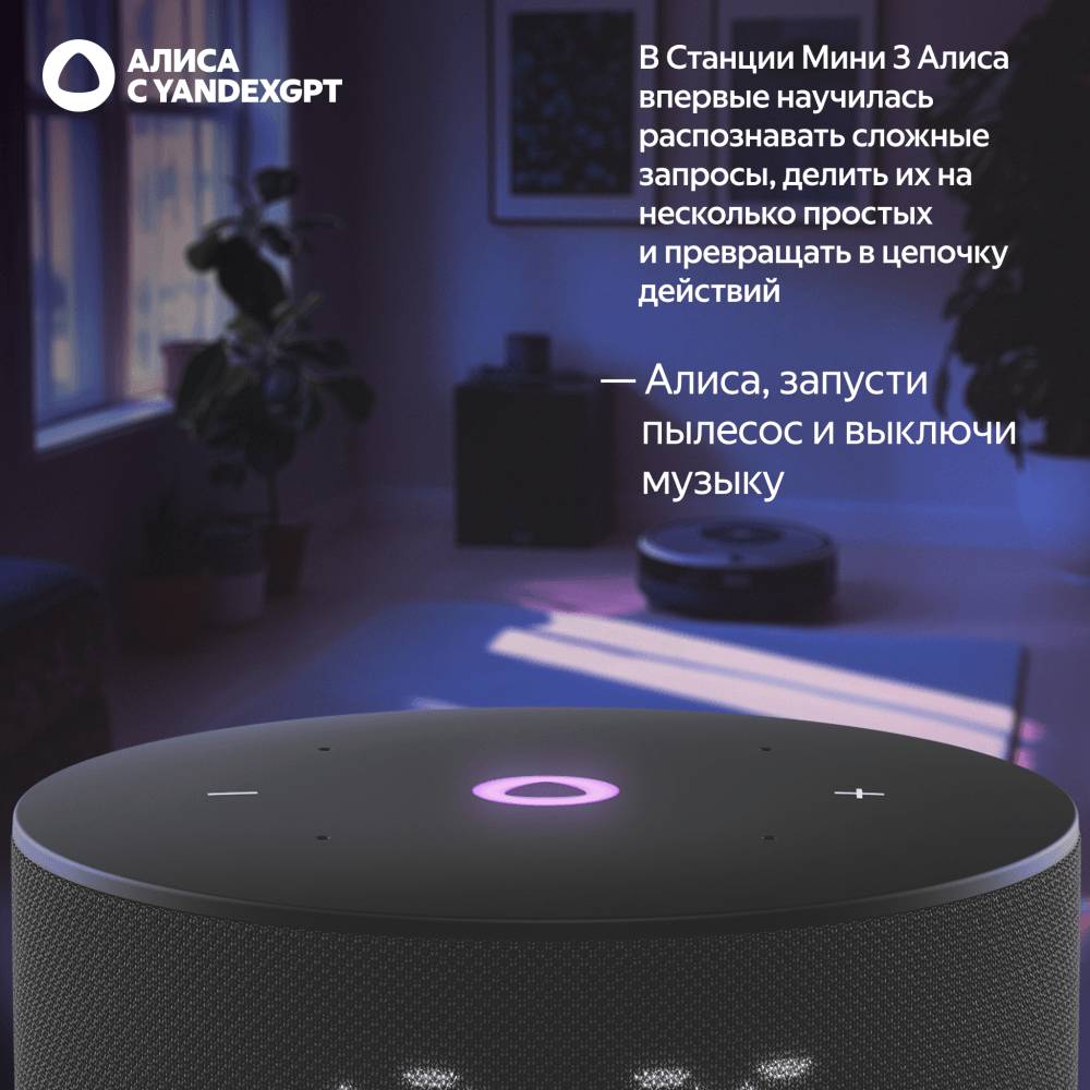 Комплектующие для "Умного дома" Yandex Умная колонка Яндекс Станция Мини 3 с Алисой на YaGPT, черный, YNDX-00027BLK