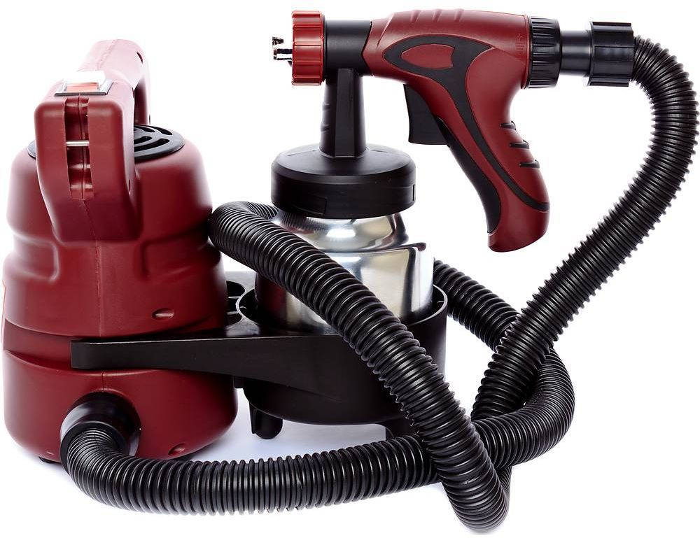 Может распылять любые краски, кроме латексных и дисперсионных, поскольку концентрация кислоты в них превышает допустимые для оборудования пределы. Длина шланга до компрессора составляет 1,5 м, что дает оператору определенную свободу передвижения и практически не стесняет его в действиях.