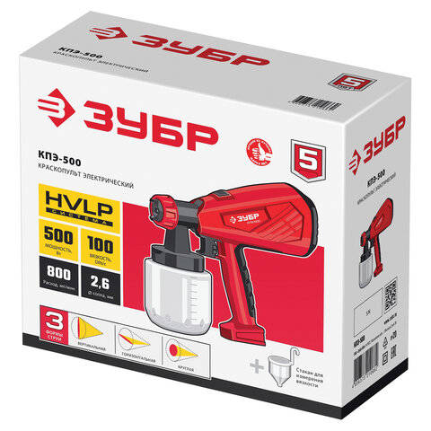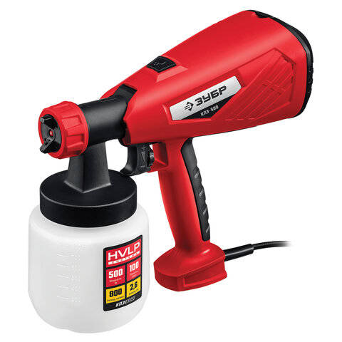 Краскопульт ЗУБР сетевой, 500 Вт, 0,8 л, краскоперенос 800 мл/мин, сопло 2,6 мм, КПЭ-500