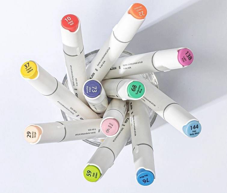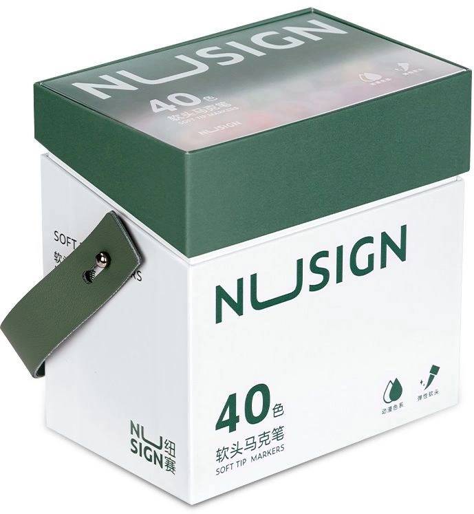 Набор маркеров для скетчинга Deli, Nusign, 40 цветов, двусторонние (кисть и клиновидный наконечник, 1-6 мм), круглый корпус, эргономичный бокс с ручкой