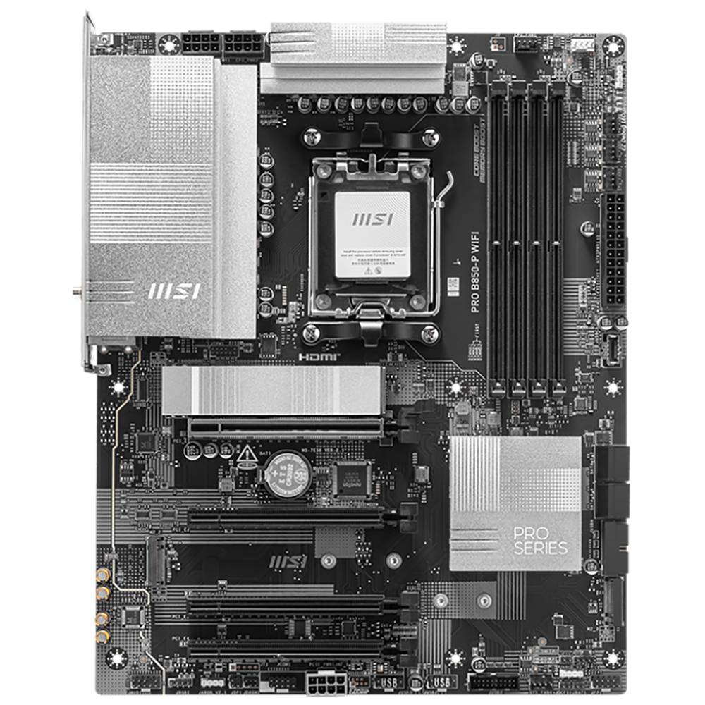 Материнская плата MSI PRO B850-P WIFI B850, , 4*DDR5, 4*PCIEx16, 3*M.2, 3*TypeC, 1*USB3.2Gen2, 5*USB3.2Gen1, 8*USB2.0, 4*SATA3.0, 5G, HDMI, ATX, RTL
