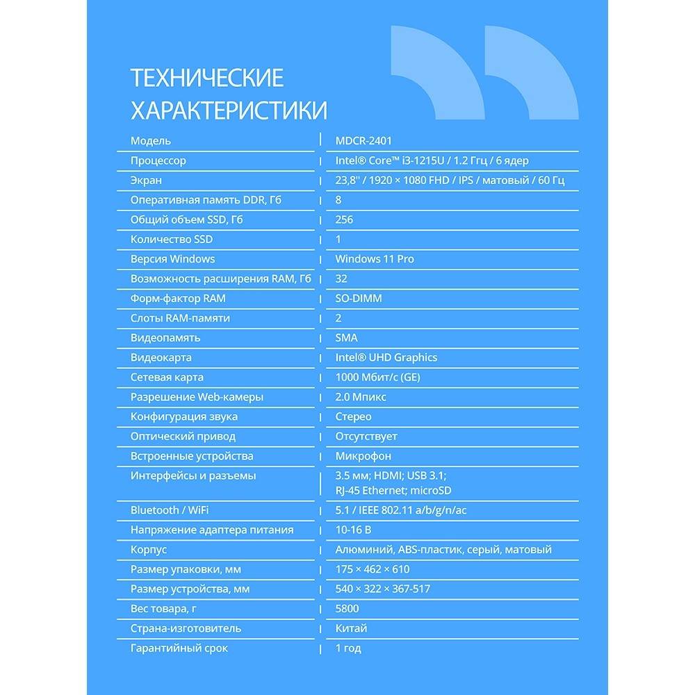 Моноблок AiO-MDCR-2401 23.8" FHD IPS (CBR-AiOMDCR2401-HN24I3G12-8G256G)