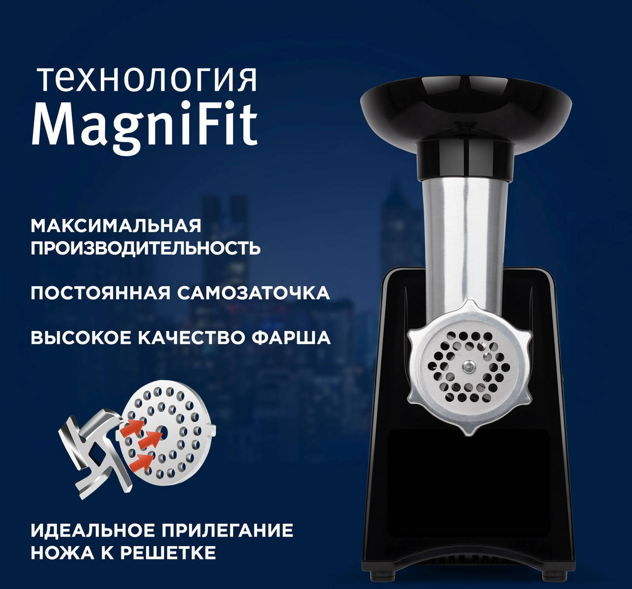 Мясорубка Vitek VT-3644 способна за считанные минуты превратить в фарш большой объем мяса или измельчить другие продукты. Благодаря уникальной технологии заточки и шлифования MagniFit, ножи и диск прилегают друг к другу максимально плотно, в результате чего измельчается 100% продукта.