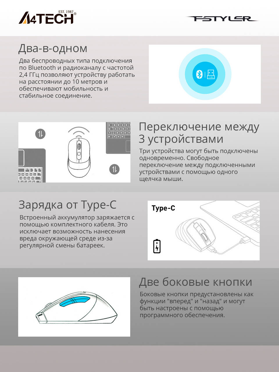 Тип беспроводного соединения мыши:Bluetooth/Радио