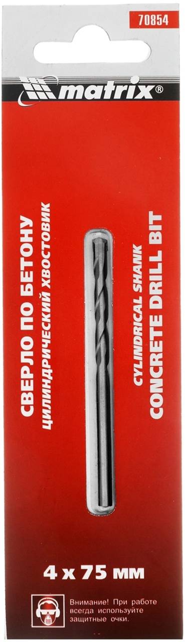 Набор бит и сверел MATRIX Сверло 70854 по бетону Д=4мм Дл=75мм для дрелей