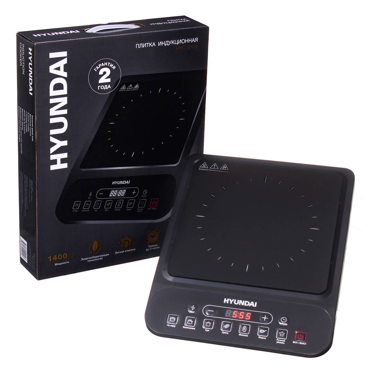 Настольная плита HYUNDAI Плита Индукционная HYC-0101 черный стеклокерамика