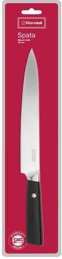 Нож кухонный RONDELL Spata RD-1136 стальной разделочный лезв.200мм прямая заточка черный блистер