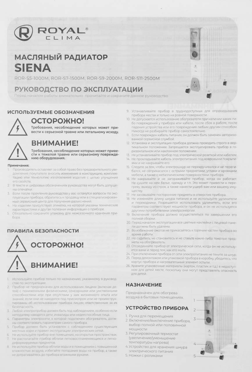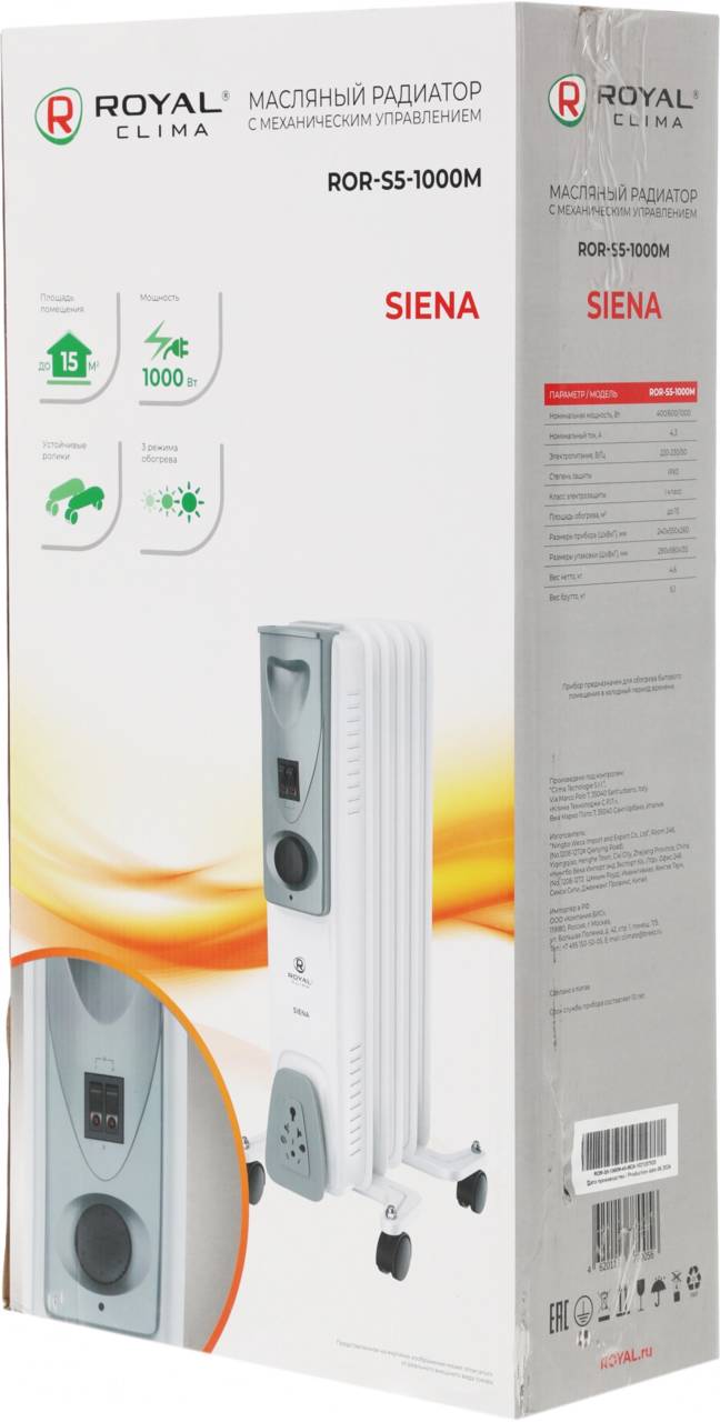 Обогреватель ROYAL CLIMA Радиатор масляный Siena ROR-S5-1000M 1000Вт белый/серый2495676-12495676-22495676-32495676-42495676-52495676-62495676-7