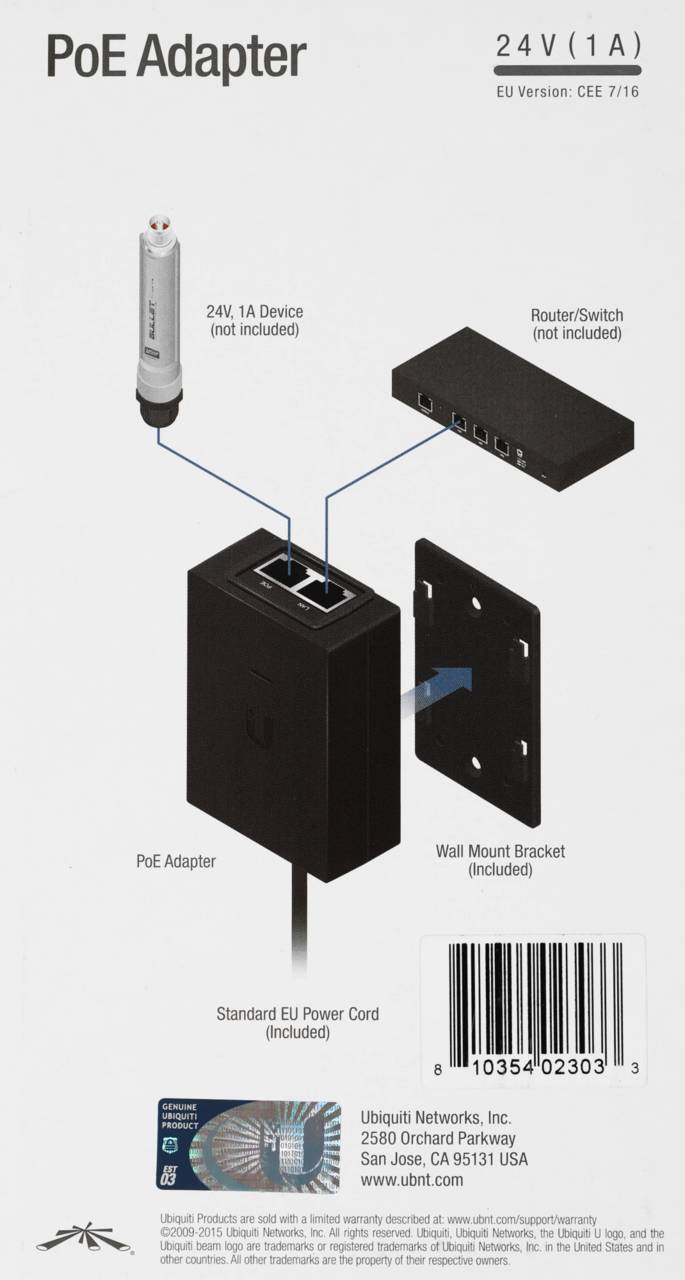 Оборудование POE UBIQUITI Инжектор PoE POE-24-24W 10/100BASE-T 100-240В