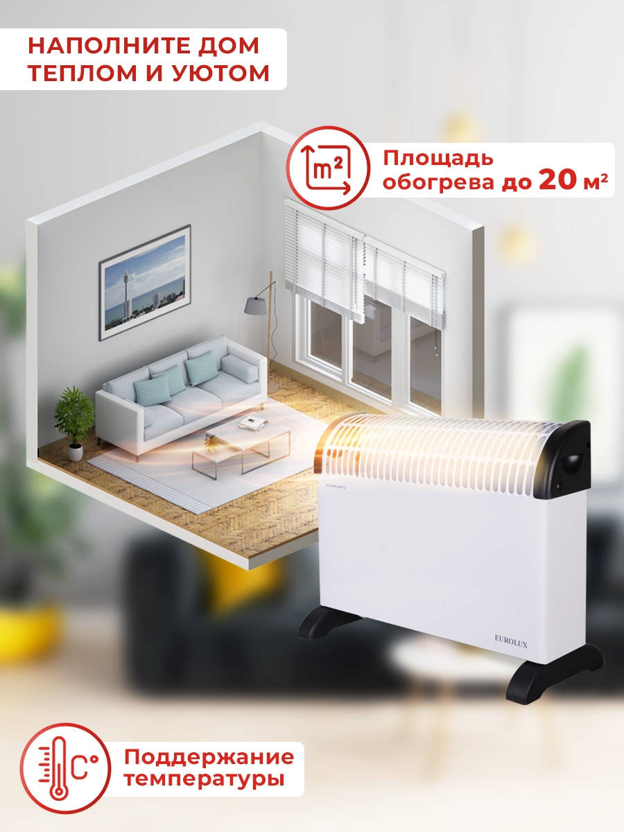Панель тепловая EUROLUX Конвектор ОК-EU-2000C 2000Вт белый