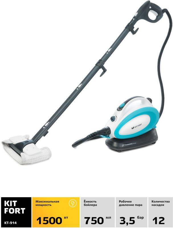 Парогенератор KITFORT Пароочиститель напольный Kitfort КТ-914 1500Вт белый/голубой (КТ-914)