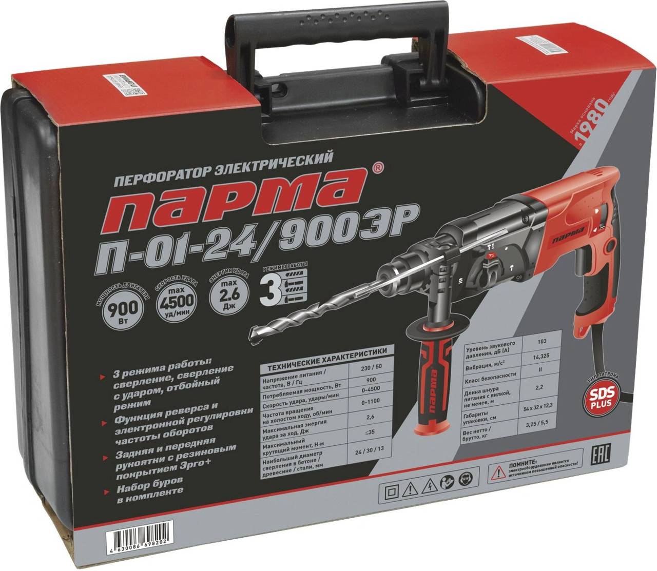 Перфоратор ПАРМА П-01-24/900ЭР патрон:SDS-plus уд.:2.6Дж 900Вт