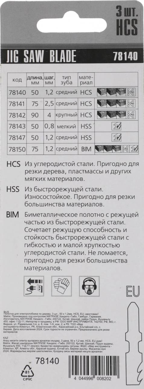 | Описание: | Пилка / полотно Набор пилок по дереву 78140 3пред. (78140) |