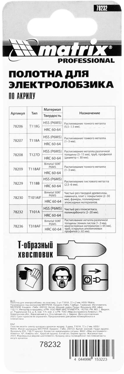 Пилка / полотно MATRIX Набор пилок по пластику 78232 3пред.3187538-13187538-23187538-33187538-43187538-5