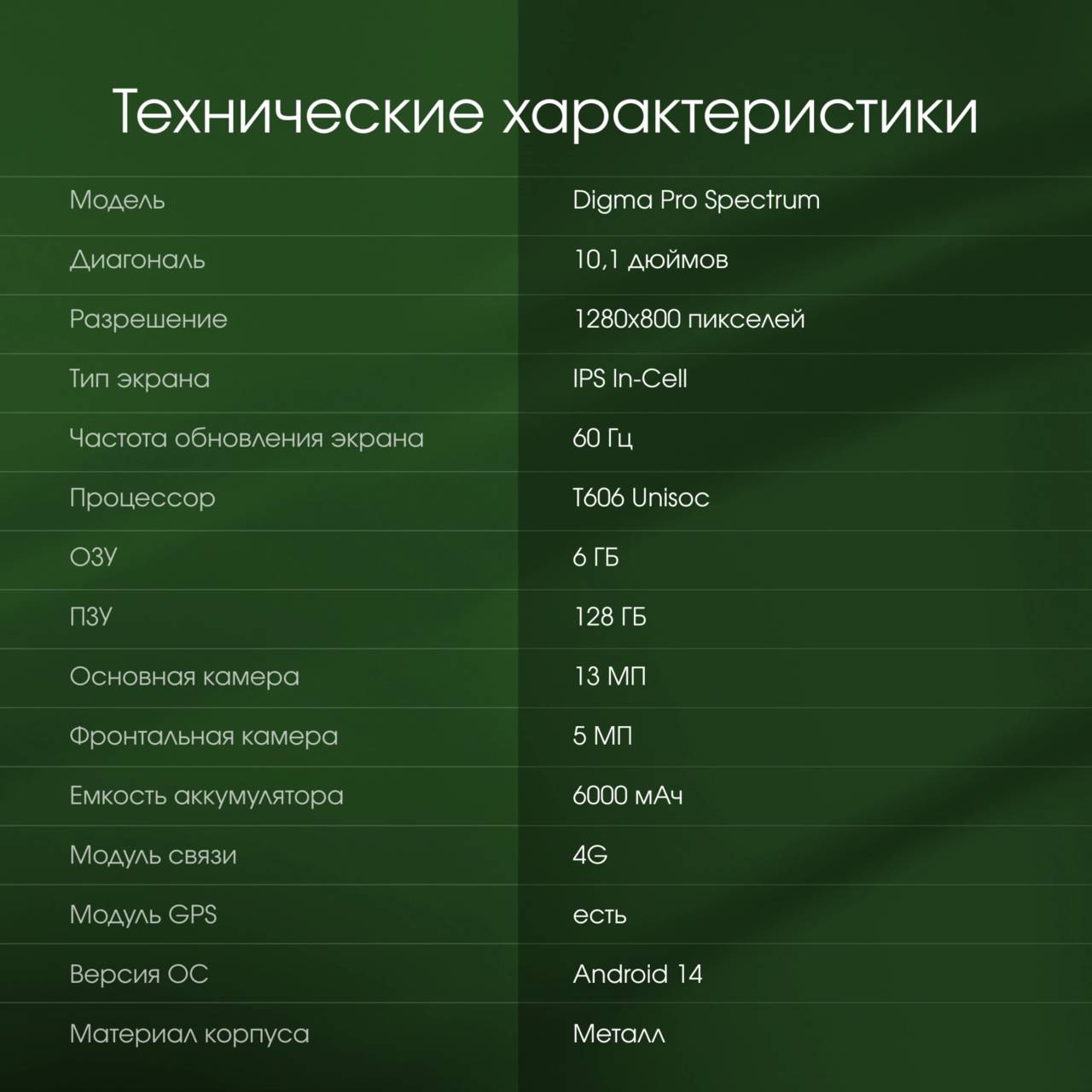 Планшет DIGMA PRO Spectrum T606  8C RAM6Gb ROM128Gb 10.1" IPS 1280x800 4G Android 14 темно-серый 13Mpix 5Mpix BT WiFi microSD 512Gb 6000mAh 255hrs2459819-12459819-102459819-112459819-122459819-132459819-142459819-152459819-162459819-17