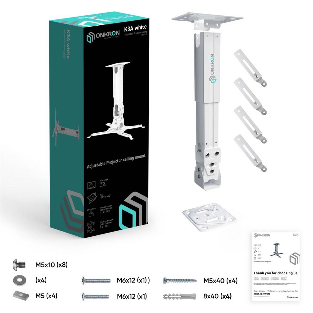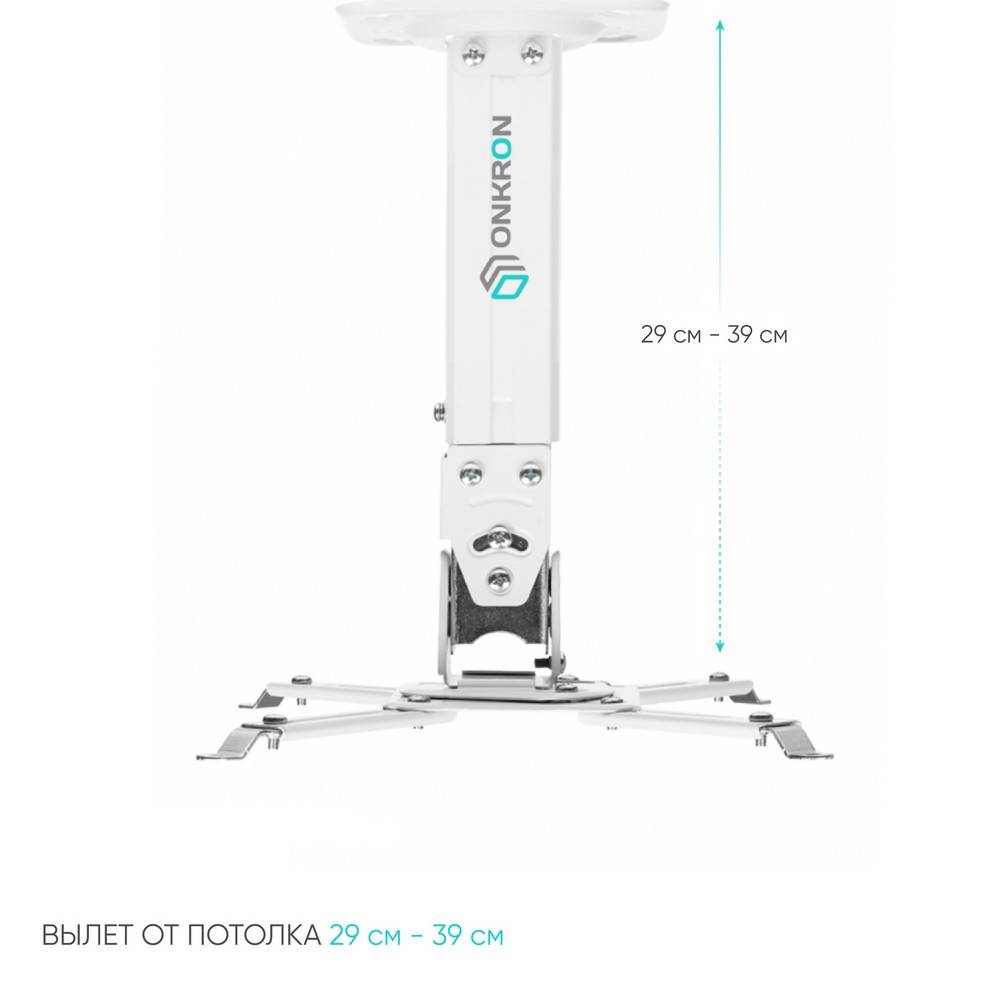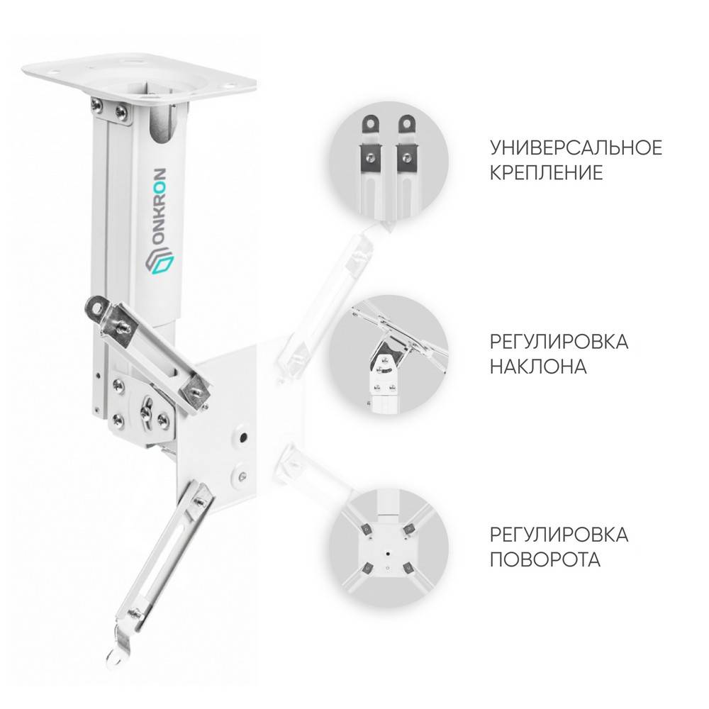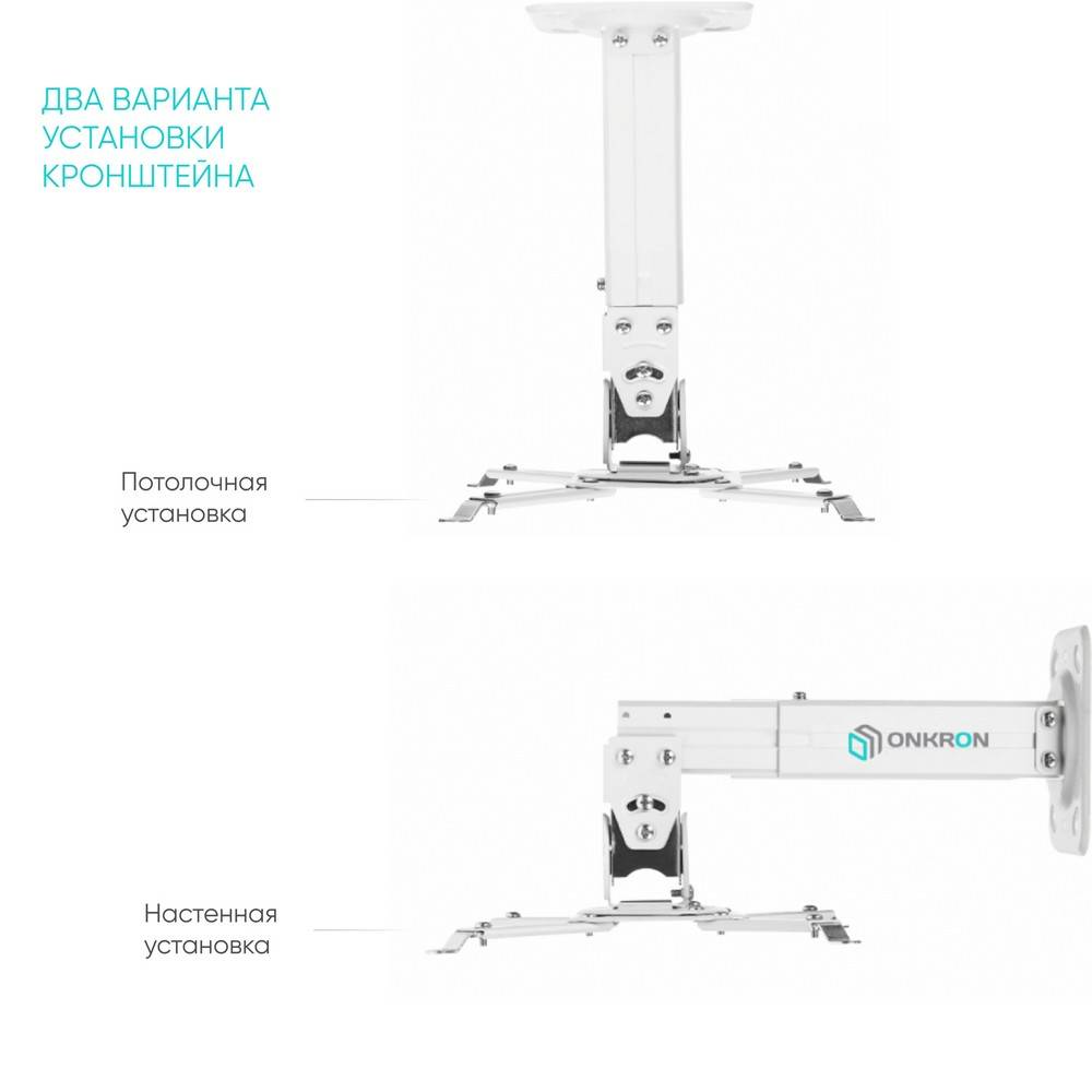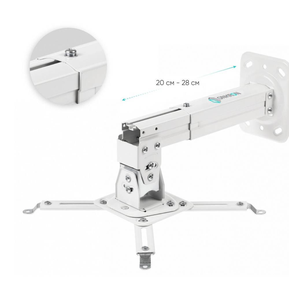 Проектор ONKRON Кронштейн настенный для проектора ONKRON/ макс 325х325, вылет от стены 275-378мм, наклон -20°/+20° поворот: 20° Макс нагрузка: 10кг (ONKRON K3A WHITE)