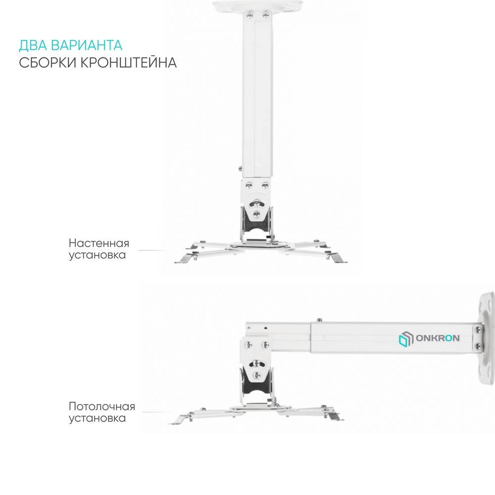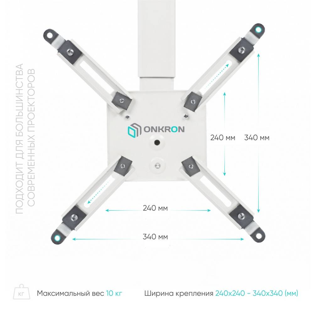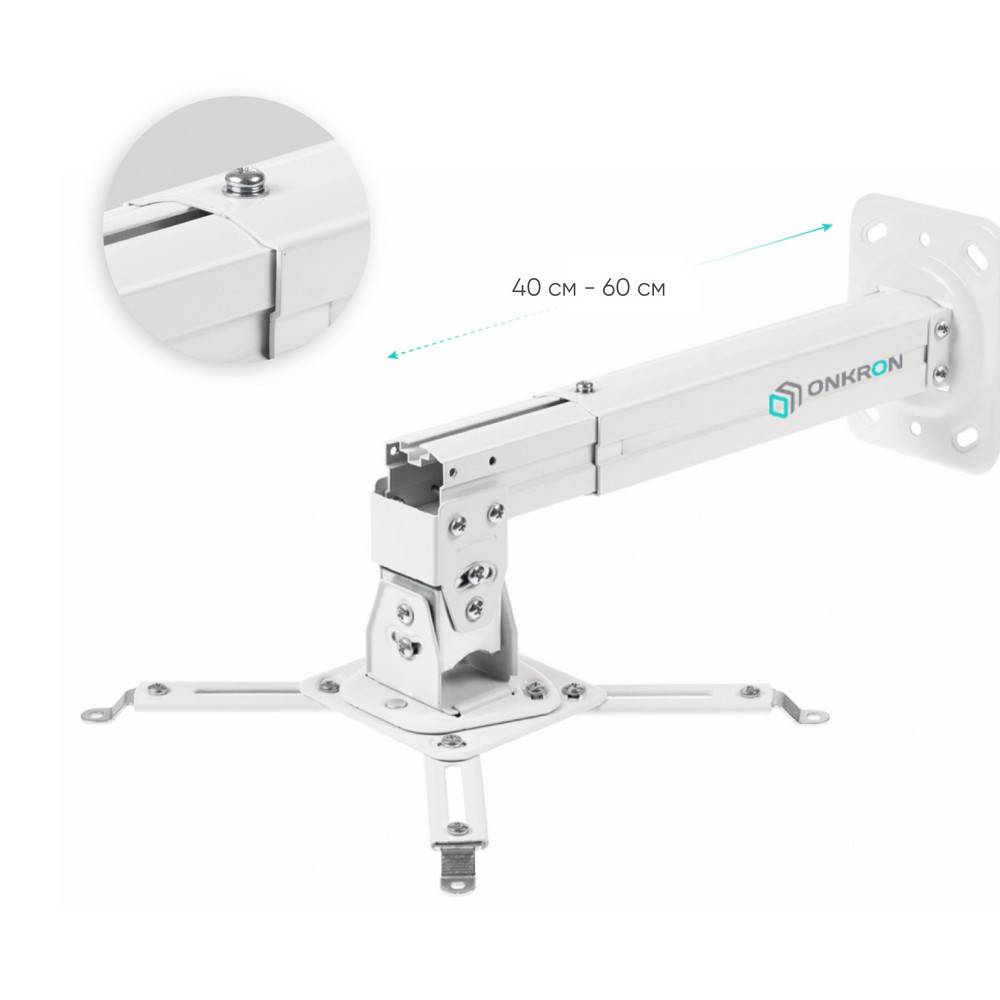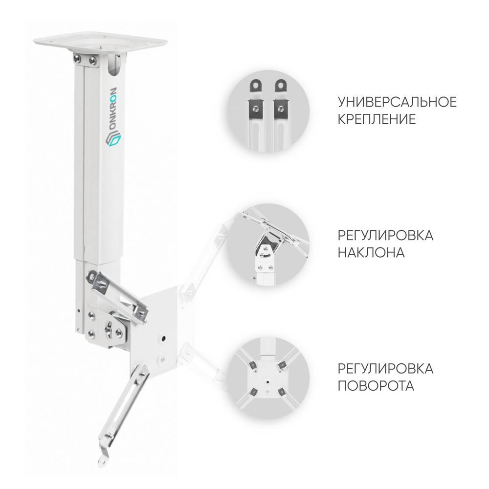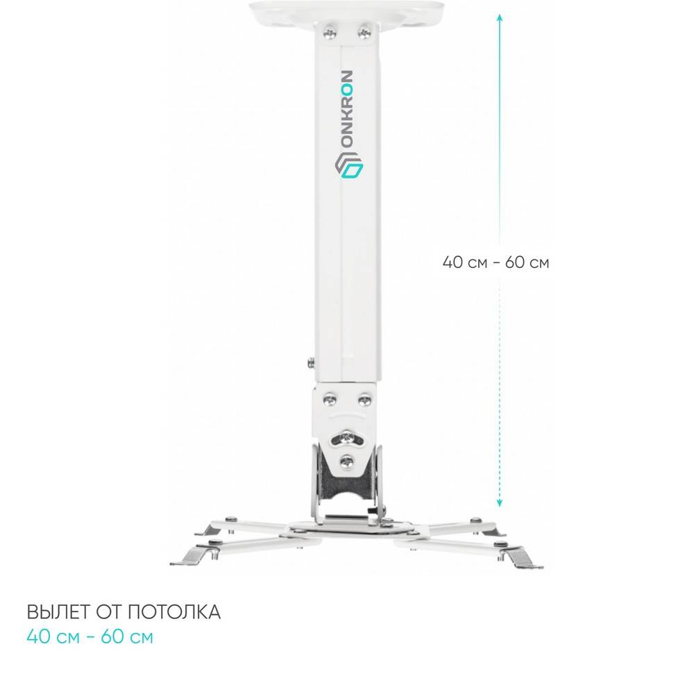 ONKRON потолочный для проектора ONKRON/ макс 297х297, вылет от потолка 375-610мм, наклон -12°/+12° поворот: ±100° Макс нагрузка: 15,1кг (ONKRON K5A WHITE)
