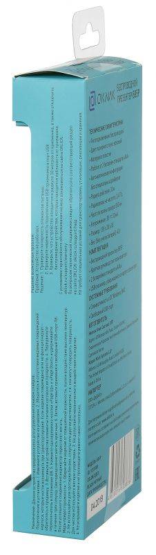 Предназначен для управления показаом слайдов. Радиосвязщсь на частоте 2,4 ГГц. Частота волны лазера 650 нм. Имеется компактны USB-ресивер, убирющийся в корпус. СОвместимость с ОС Windows и MAC. Свободный USB порт.