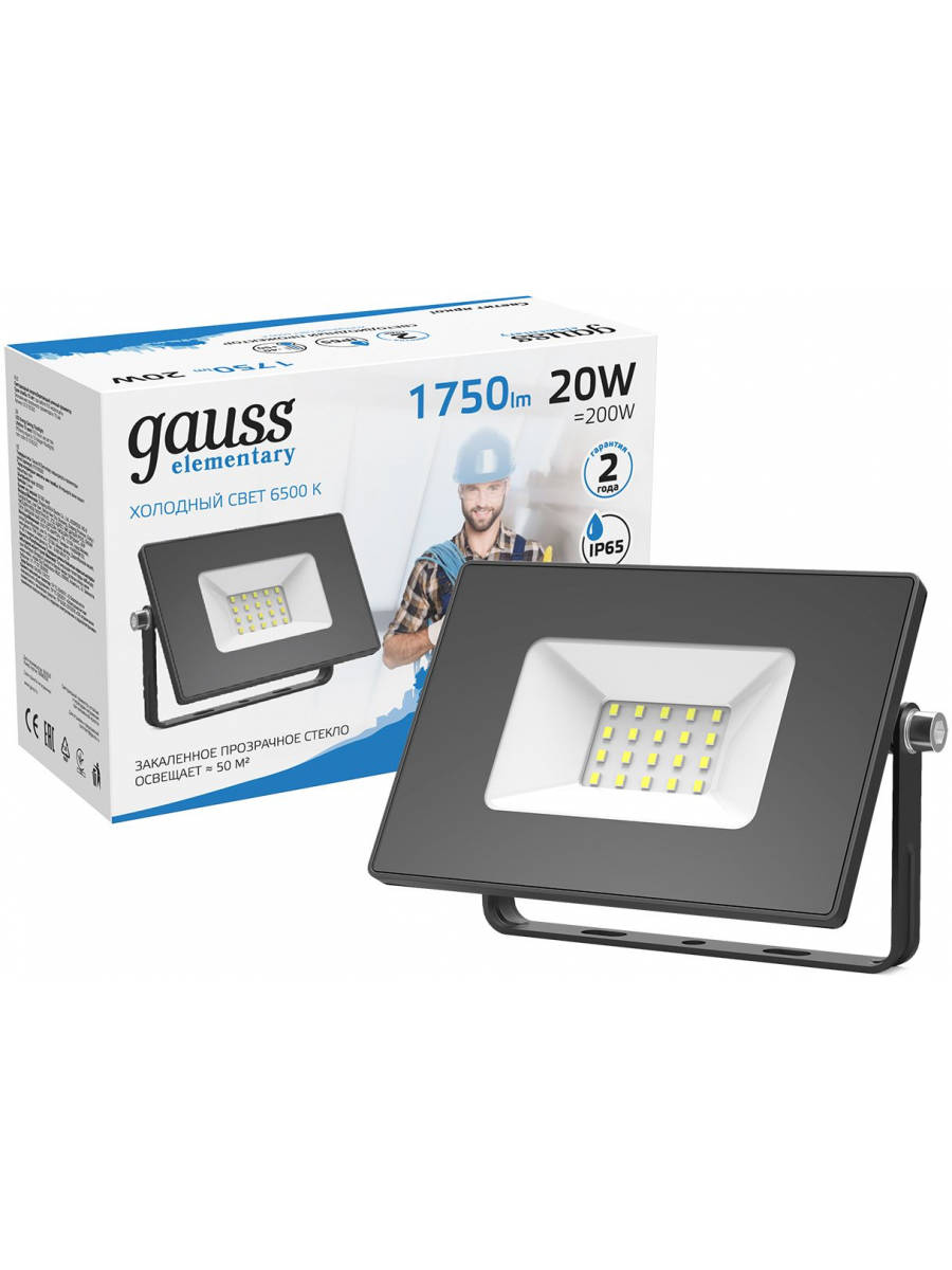 Прожектор уличный GAUSS Elementary 613100320 светодиодный 20Вт корп.алюм.черный