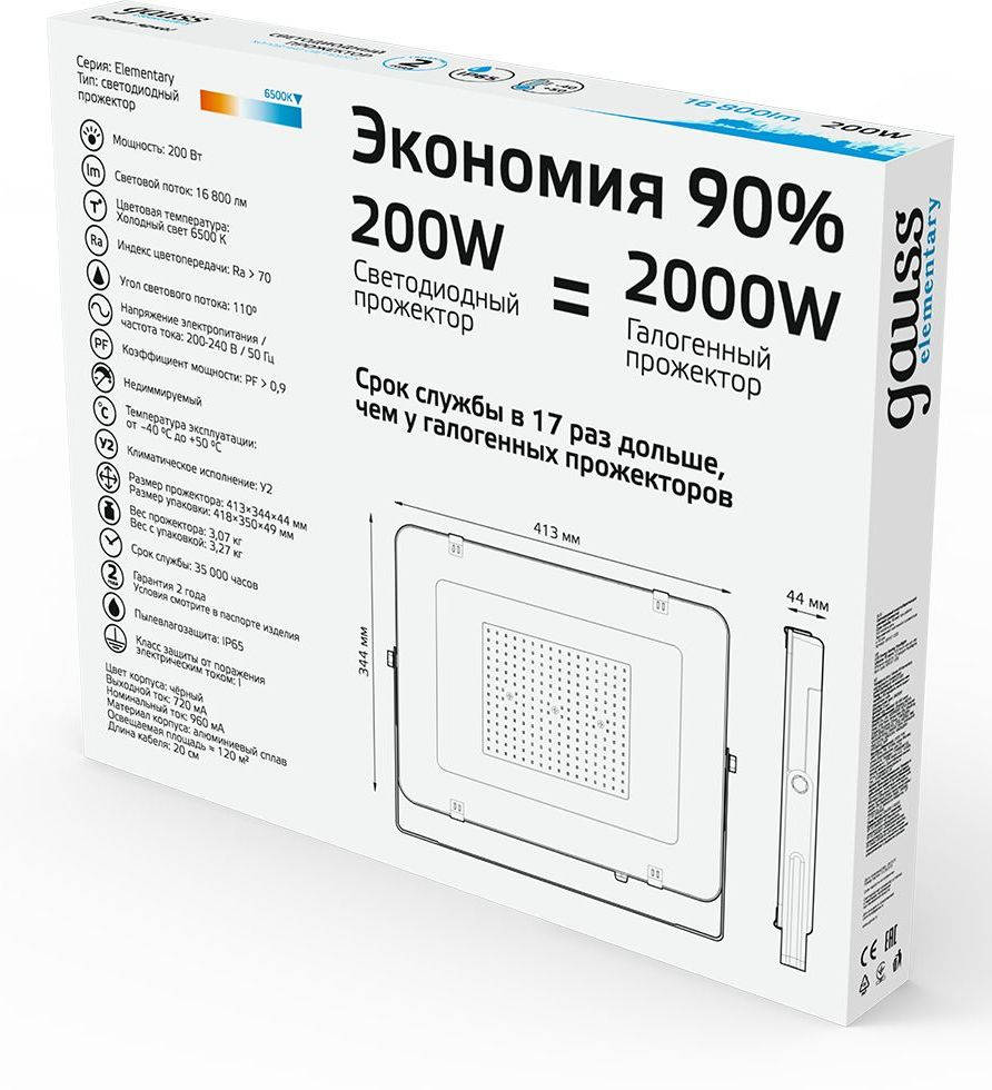 | Описание: | Прожектор уличный GAUSS Elementary светодиодный 200Вт корп.алюм.черный (691511200) |