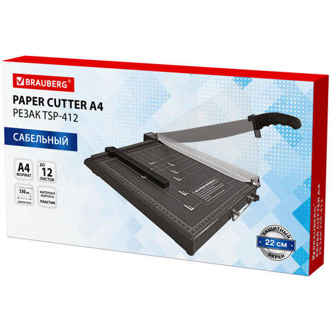 Резак Brauberg сабельный KATANA TSP-412, А4, на 12 л., длина реза 330 мм, пластиковое основание, защитный экран, 532987