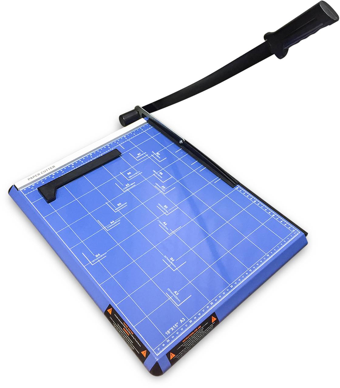 Сабельный резак с механическим прижимом для фиксации листов формата А3. Рабочая поверхность имеет удобную разметку для правильного позиционирования.