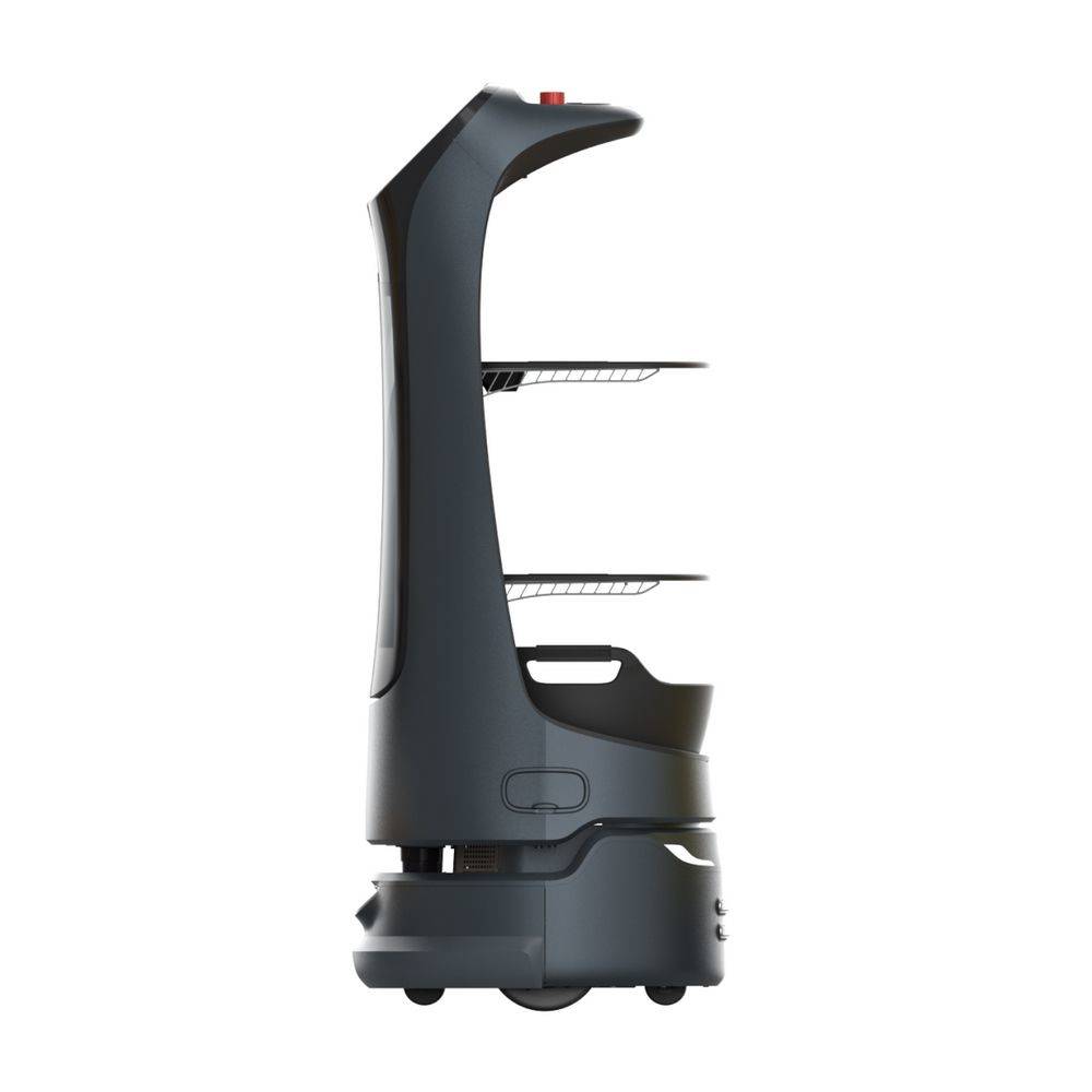 | Особенности: | Для использования внутри помещений. Режимы: привлечение клиентов, сопровождение, «круиз», доставка и «день рождения». Распознавание лиц. Широкоугольная камера типа "рыбий глаз". Съемные лотки (полки): 352x340мм. Расстояние между лотками (сверху вниз): 248/253/223мм. Датчики лотков. Минимальный коридор для проезда: 55см (низ)/52см (верх). Предупреждение о низком уровне заряда аккумулятора и автоматическая подзарядка. |