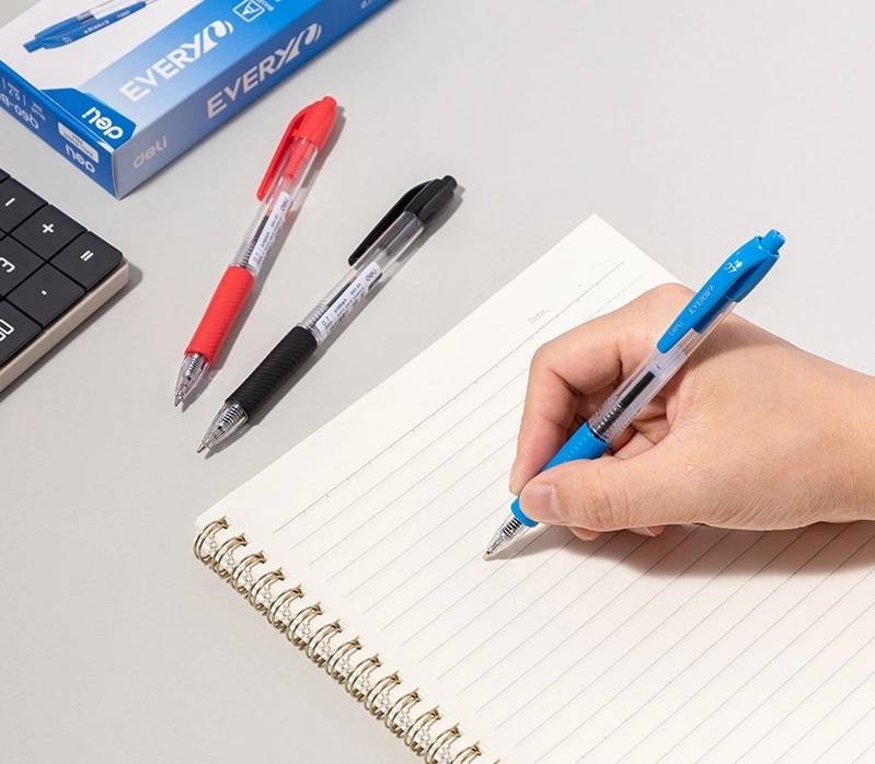 Ручка шариковая DELI Ручка шариков. автоматическая Every EQ60-BL прозрачный/синий d=0.7мм син. черн. кругл. резин. манжета